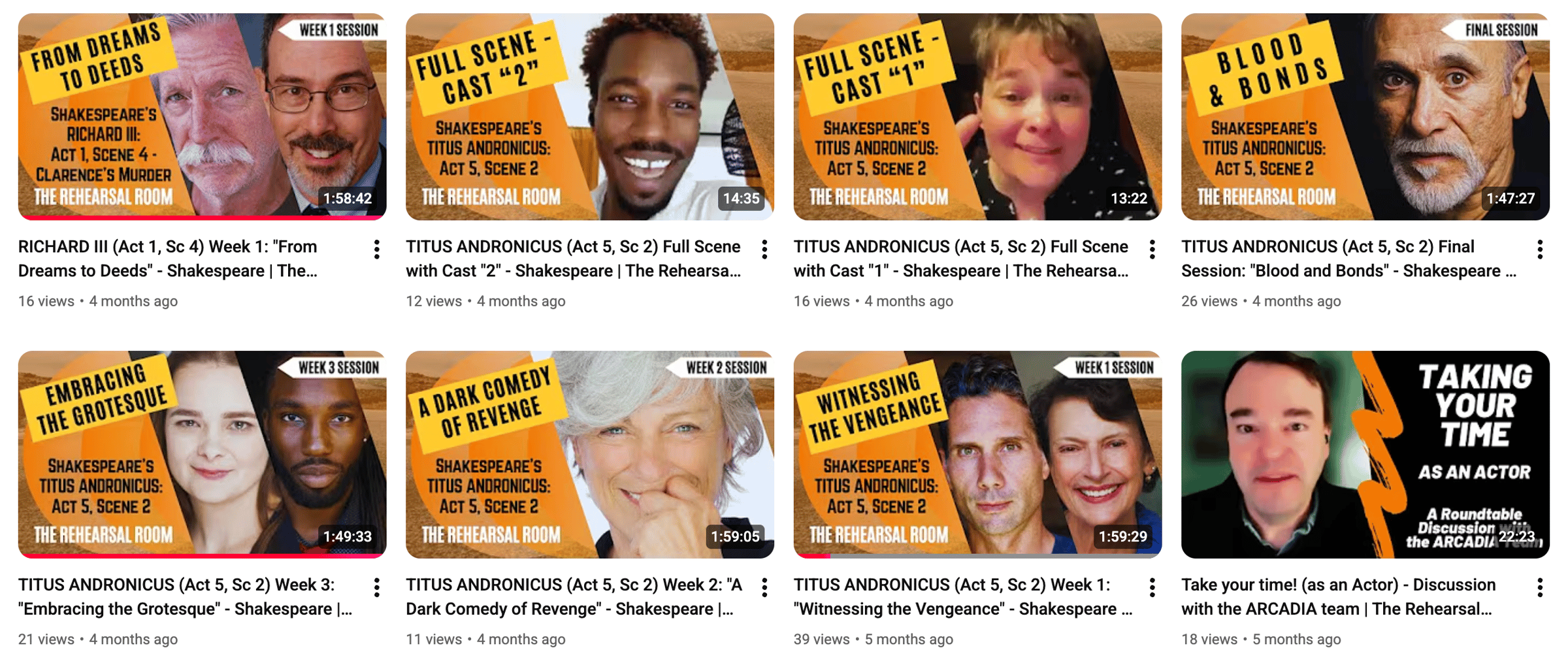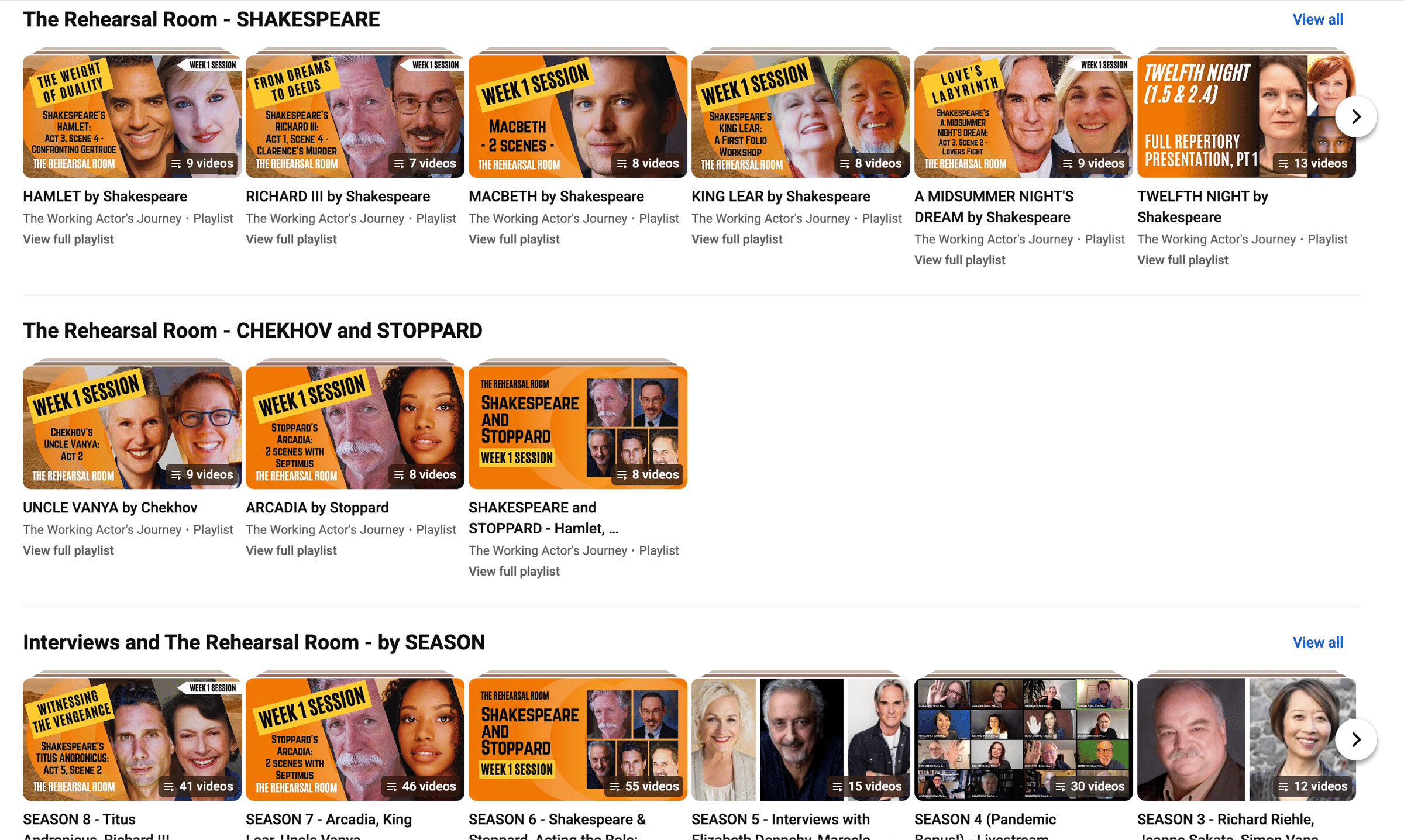 There's likely something for everyone to enjoy, and I've included several options below. Wishing you a fun and rejuvenating December! Catch up on Season 8 in The Rehearsal Room!featuring Rehearsal Room work from Shakespeare's Titus Andronicus, Richard III, Hamlet, A Midsummer Night's Dream, and Twelfth Night Over 25 artists involved in some fantastic work this season! ▶️ Watch on YouTube or 🎧 listen on the podcast Looking for something Short-er?18 videos from Season 8 - all 90 seconds or less! You can also browse by PLAYWRIGHT or SEASONCheck out all the work with SHAKESPEARE, CHEKHOV, STOPPARD or all the work and interviews in each season - right on our YouTube home page!