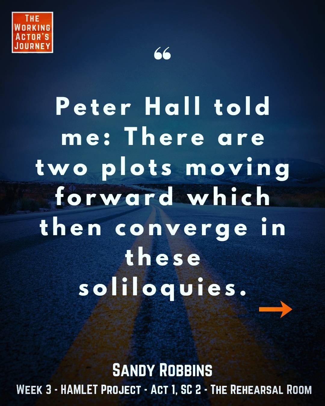 What are the two plots? Click to find out!Click the quote to comment or share on Instagram! **************** All our interviews and rehearsals have no upfront cost — AND, your support helps us keep this space creative, accessible, and high-quality. Please consider sending a one-time donation via PayPal, Venmo, or credit card. You can also get early access to sessions and an AD-FREE podcast version with a monthly contribution via Patreon, starting at only $5. THANK YOU to our patrons at the Co-Star level and higher: Joan, Michele, Jim, Magdalen, Claudia, Clif, Jeff and Robert! ****************